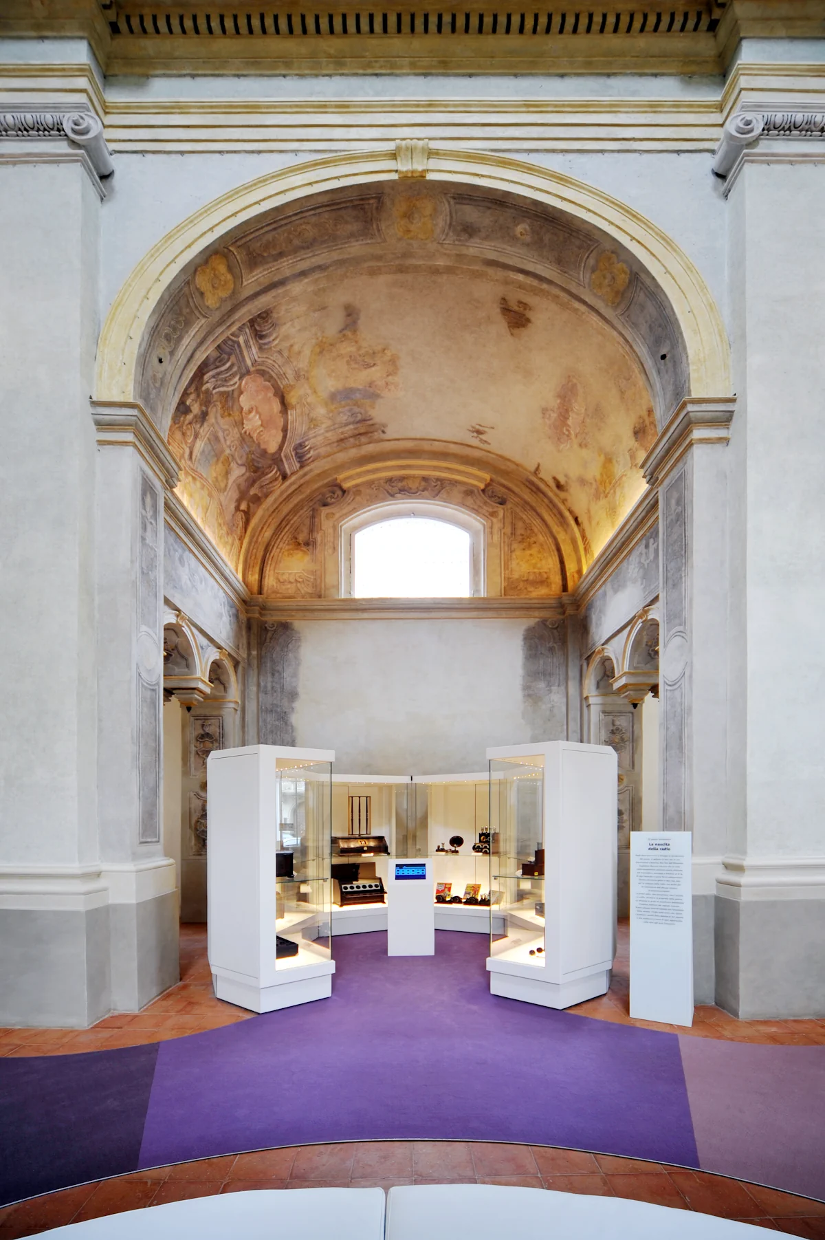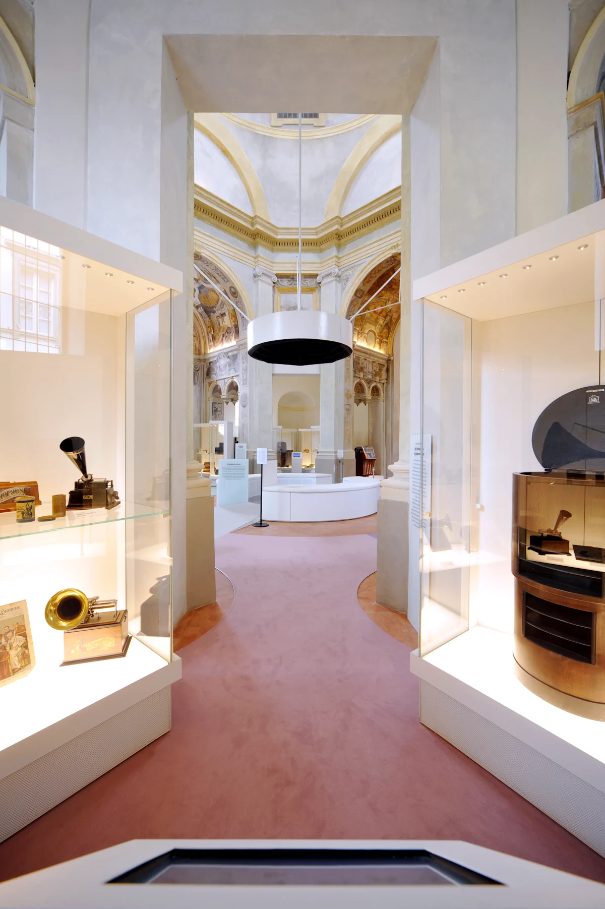 The exhibition is a museum and, at the same time, an experimental laboratory. It is an instrument of scientific research, but also a knowledge centre open to the public. It is housed in the 17th-century Church of Sant’Elisabetta in the historic centre of Parma. The permanent exhibition of the historical Patanè collection is housed in the six side chapels of the centrally planned church, in six niches containing sound reproduction instruments – from phonographs to iPods – and their sound, in their historical order of appearance.