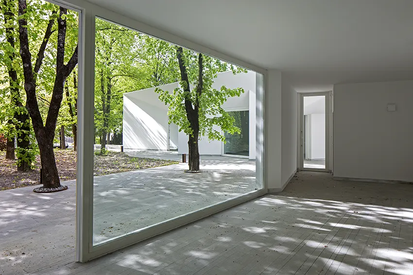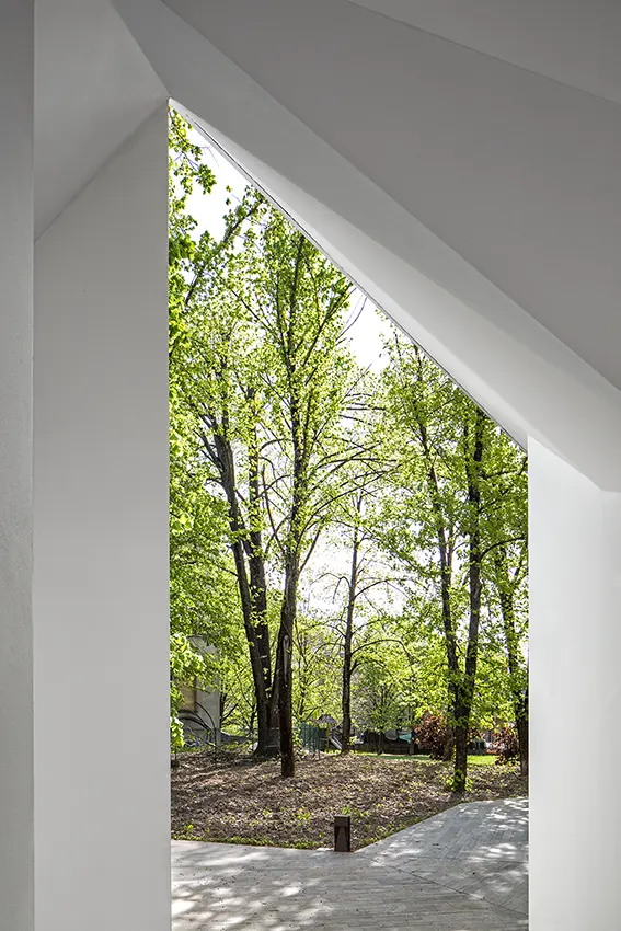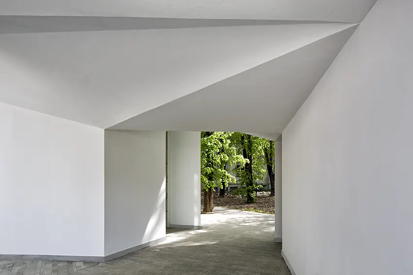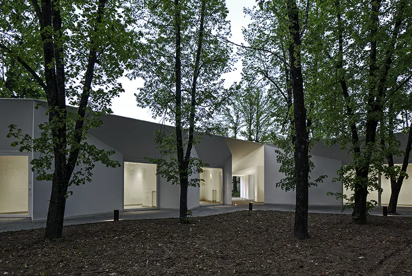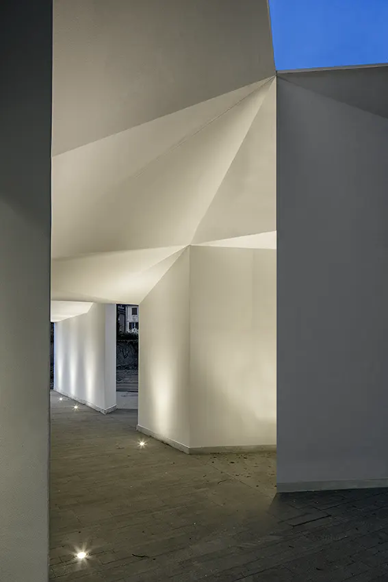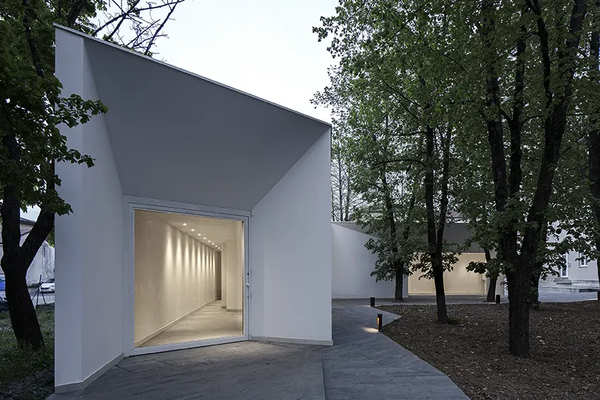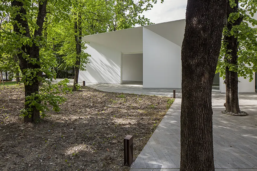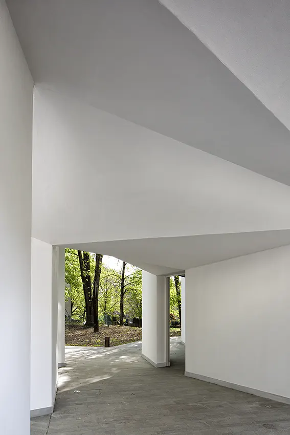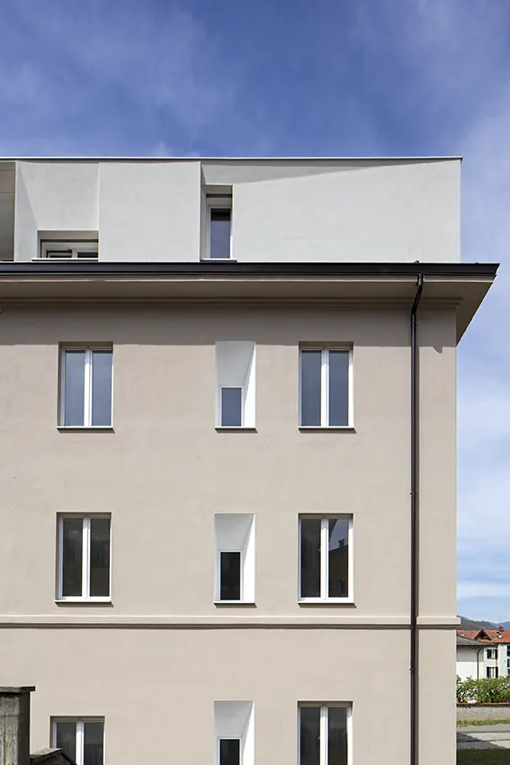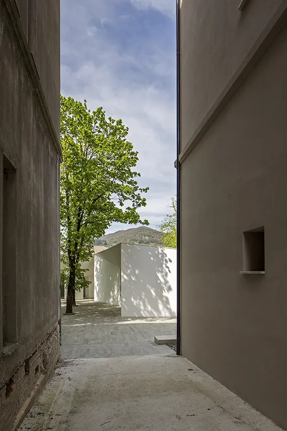 The project, which won the PRUACS (Urban Redevelopment Programme for Sustainable Rental Housing) regional call for proposals, creates a new public centre in the San Rocco district. The project, which is the subject of an Urban Recovery Plan, directed the restoration of the former school building towards sustainable housing. It did so as part of an overall design to reconnect with the surroundings by opening up new road traffic and vehicular access connections and enlarging the existing public gardens. The project for the building maintains the structural system of load-bearing walls unaltered while adapting the new distribution layout of the accommodation units – which follow the Parma ERS (Social Residential Housing) Guidelines – by preserving the original window system with the addition of small, clearly distinguished openings. An extra level is created by raising a new horizontal volume beyond the eaves line. Around this intervention, the urban design focuses on the development of pedestrian paths that cross the entire area, differentiating between driveways with parking spaces on one side and pedestrian paths that lead into the park. The instrument for this distinction is the civic rooms, which bring condominium spaces out of the historic building and offer them for public use. The new architectural body is shaped by this assumption of responsibility, becoming a visually sensitive diaphragm: on one side it is closed to hide the view of cars and protect against the noise of traffic, and on the other it is opened up as a backdrop for the enlarged public park. With this choice, the project reorganises and strengthens the San Rocco district’s only public central space. In this way, the rooms, divided into a large space for meetings and conferences and two smaller areas designed for cultural associations, accompany the path towards the historic centre of Borgotaro on the other side of the river.