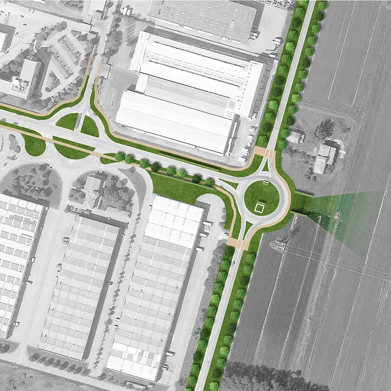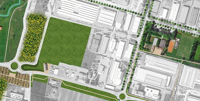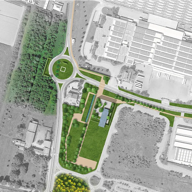 The strategy for transforming Parma’s most important and most degraded industrial area into an Eco District identified the strengths and weaknesses of the existing situation and questioned how to improve the current structure by setting up a growth model that promotes environmental and social sustainability as a future approach in order to reconnect a currently isolated area to the city, improving services for businesses and workers, and implementing real and perceived security. The regeneration of the SPIP area can be developed around a number of central themes to be integrated in the project: the identification of the historical centurial matrix through which the new characterising planting of poplars can be defined; the identification of the park on the Canal as an axis of green penetration in the area along which soft mobility can be developed as a daily link to the city, Paradigna Abbey and Colorno; the redevelopment of the central road axis of Via Forlanini, which can become a linear park crossed by soft mobility and communication for businesses; a collective mobility initiative that promotes the construction of a stop on the Parma-Brescia railway integrated with bicycle parking and a bike sharing point to then introduce an organic system of cycle-pedestrian routes; the implementation of common services for businesses and employees such as social vegetable gardens, a kindergarten, a conference centre, an area for events, and areas equipped for hauliers; the transformation of the abandoned car park – currently a symbol of the area’s degradation – into a co-working space serving businesses; the identification of the two main entrance gateways and some secondary ones, which, as well as an opportunity to promote the area, can become access control points; the signposting of the Eco District on national travel routes such as High Speed and Motorway.