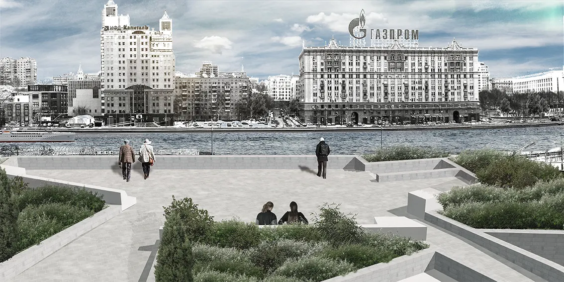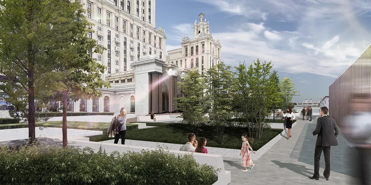 The proposal is a counter-project – selected at the final invitational stage – that contradicts the specifications of the competition announcement by refusing to propose a new covering for the entrance to the Stalinist hotel to replace the existing one. Due to the rigid environmental conditions, architecture in Moscow has always found space for commercial functions, the social dimension and urban identity inside large covered spaces that reinterpret the settlement rules of the streets in a warm and sheltered context, as in GUM, the Petrovky Passage or the People’s Cathedrals of the Moscow metro stations. The decision to avoid a new roof, to solve the problem of accommodating guests in winter under the square and to redefine the space in front of it as a green square makes it possible to remove the existing incongruous structure and to recover the historical building, returning it to its original configuration. The project aims to establish an architectural and visual relationship between the two banks of the Moskva, connecting the hotel to the riverfront and its new services, creating a new underground shopping gallery, recovering the underground levels of the existing structure and excavating the space between the Ukraina hotel and the car park along the entire distance separating it from the river. The project is therefore shaped by the integration of the various levels of mobility and accessibility, which make it possible to imagine that the area over the gallery in front of the hotel becomes a linear green square at the city level that stretches out to a large urban terrace on the river, at the pier. The proposal was an unexpected response to the call for tenders. It offers the unforeseen possibility of regenerating the open-air context and bringing the unused floors of the hotel, the conference centre and the recently built shops above the car parks indoors through the new shopping arcade.